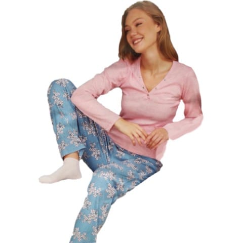 Πιτζάμα γυναικεία ‘V’ με κουμπιά P197